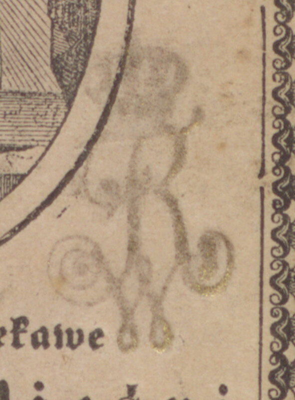 Prawdziwa historya o bolesney męce i śmierci, o cudownem zmartwychpowstaniu i wniebowstąpieniu Odkupiciela i Pana naszego Jezusa Chrystusa tudzież inne nabożne i ciekawe czytania (...) dla użytku i zbudowania bogoboynych chrześcijan prawowiernych - superekslibris z monogramem FWR (Fridericus Wilhelmus Rex)