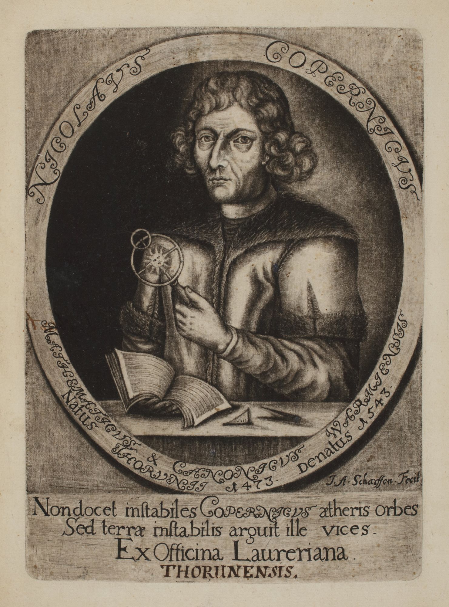 Wizerunek Mikołaja Kopernika I. A. Scharffena, wykonany w technice mezzotinty, wzorowany był