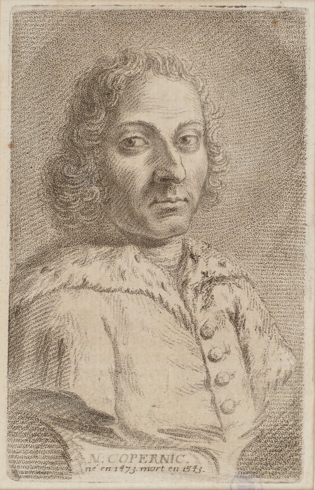 Rycina ukazuje wizerunek Mikołaja Kopernika ujęty od piersi, zwrócony w lewą stronę. Portretowany patrzy na widza. Astronom ubrany jest w sutannę zapinaną guzikami z wyłożonym dużym futrzanym kołnierzem. Twarz podłużna, wydatny nos, włosy kręcone do ramion (niespotykane w tradycyjnej ikonografii wizerunku Kopernika). Kreska miękka, szkicowa, doskonale imitująca rysunek. Technika wykonania, bardzo nowatorska w poł. XVIII w., tzw. „sposób kredkowy” (manière de crayon), m.in. dzięki zastosowaniu nowego narzędzia, ruletki – dawała ona efekty imitujące rysunek wykonany kredkami bądź pastelem. Autor grafiki swój wynalazek opublikował w pracy Principes de dessein faciles et dans le goût du crayon (Lyon 1748). Następnie w 1757 r. zaprezentował go członkom Akademii Królewskiej w Paryżu. Przedstawione ryciny wzbudziły zachwyt akademików, zaś Ludwik XV – na dowód uznania zasług artysty – przyznał mu roczną pensję w wysokości 600 liwrów oraz tytuł „Graveur des Dessins du Cabinet du Roi” (Rytownika Królewskiego Gabinetu Rysunków). Napisy: „N: COPERNIC/ne en 1473. mort en 1543;” – na dole ryciny