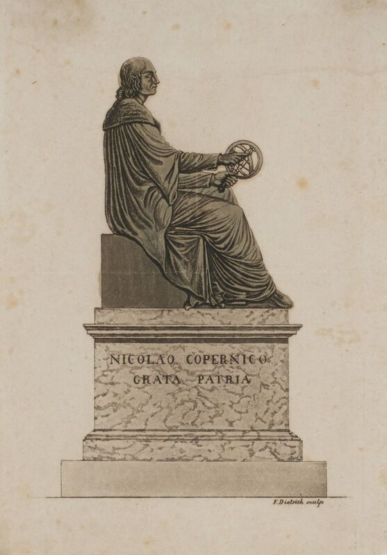 Pomnik Mikołaja Kopernika w Warszawie dłuta Bertela Thorvaldsena. Monument usytuowany w Warszawie przed Pałacem Staszica, odsłonięty w 1830 r. Pomnik ukazany od strony bocznej. Astronom ujęty w pozie siedzącej, w lewej ręce trzyma sferę armilarną, a prawą wskazuje na nią. Napisy: „NICOLAO COPERNICO GRATA PATRIA” – na cokole monumentu. U dołu z prawej strony ryciny sygnatura /F.(rydryk) Dietrich sculp/. W lewym dolnym rogu kartonu exlibris: „/COPERNICANA JANINY GARDZIELEWSKIEJ/”, nad napisem rysunek: Słońce, Ziemia z orbitą i Księżycem, miedzioryt, wym. 3,8 x 2,5 cm