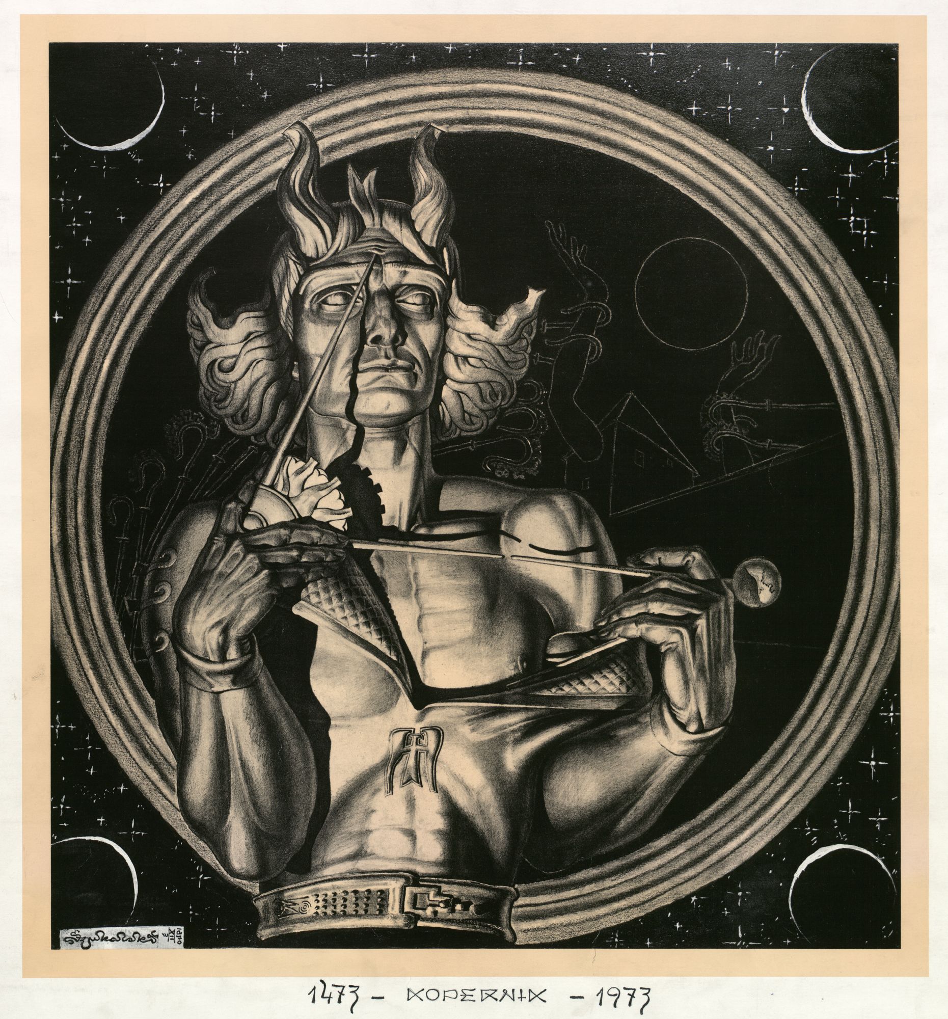 Portret symboliczny Mikołaja Kopernika w półpostaci na wprost z astronomicznymi atrybutami. Kompozycja w kole. U dołu napis: „1473 – KOPERNIK – 1973”. Autorem tego oryginalnego wizerunku wielkiego astronoma, powstałego z okazji 500. rocznicy jego urodzin, jest Stanisław Szukalski, artysta, rzeźbiarz, przywódca grupy artystycznej Szczepu Szukalszczyków herbu Rogate Serce. Postać znana, utalentowana i kontrowersyjna. Artysta wiele lat spędził w Stanach Zjednoczonych. Studiował w Akademii Sztuk Pięknych w Krakowie.