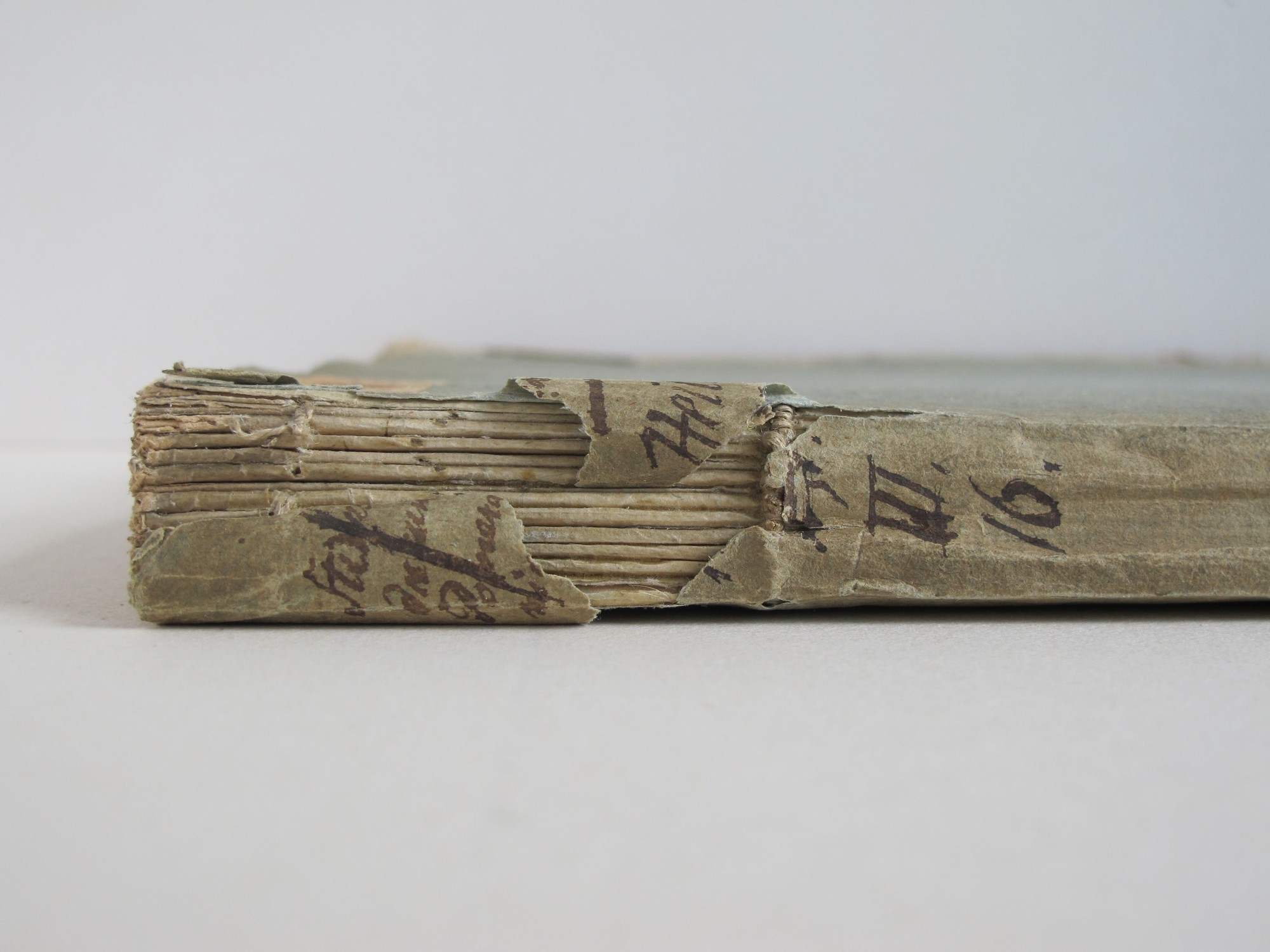 - Grzbiet rękopisu nowożytnego przed i po pracach konserwatorskich